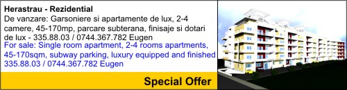 Home / Acasa Sales / Vanzari Lands / Terenuri Villas / Vile Apartments / Apartamente Commercial Spaces / Spatii Comerciale Rentals / Inchirieri Villas / Vile Apartments / Apartamente Commercial Spaces / Spatii Comerciale Special Offers / Oferte Speciale Contact Us / Contact